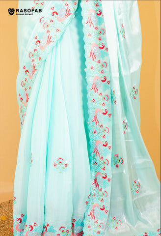 Bring a spark to your beauty and get yourself a glamorous yet refined look with this Designer, elegant sophisticated work, and a luxurious appeal Saree, this piece is sure to make a head-turning statement. Grab this picture-perfect OOTD and be the cornerstone of your upcoming events.